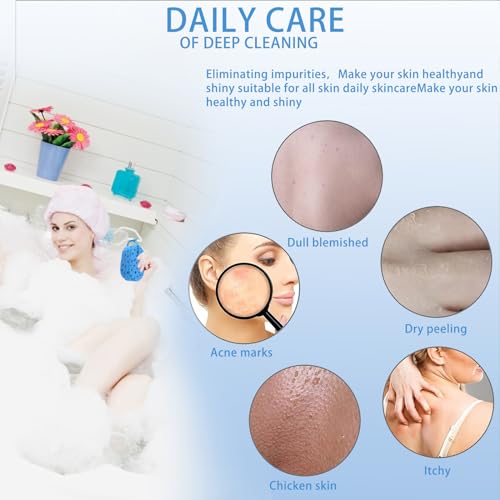 💧 Abundant Moisture and Luxurious Lather 💧 Each exfoliating bath sponge requires only a minimal amount of soap or body shampoo to produce an abundance of bubbles. It cleans thoroughly without stripping your skin of its natural protective oils. The gentle formula helps keep your skin soft and healthy.
