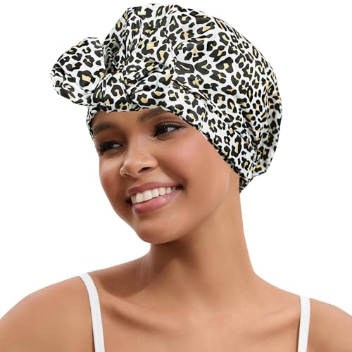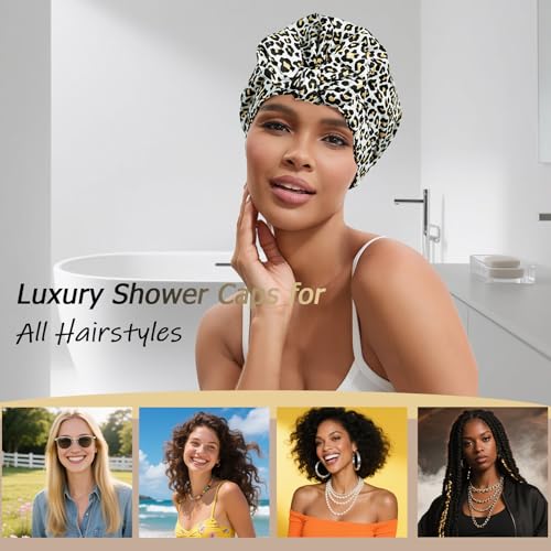 Shower Caps for Women, Reusable Waterproof, Luxury Hair Cap for Shower, Large Adjustable Bowknot Bath Cap for Long Hair Braids
