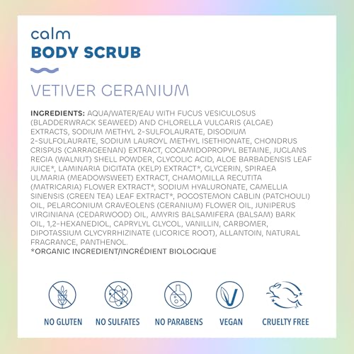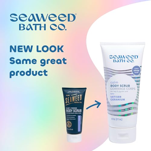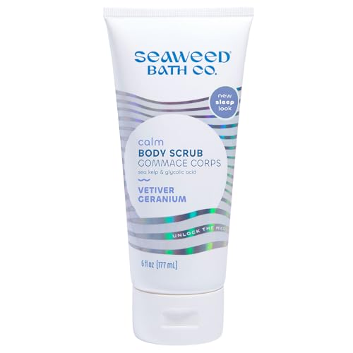 Seaweed Bath Co. Calm Body Scrub, Vetiver Geranium Scent, 6 Ounce, Sustainably Harvested Seaweed, Sea Kelp, Glycolic Acid