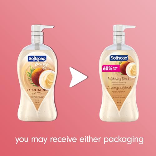 Softsoap Body Wash Pump, Coconut Butter Scrub, Exfoliating Body Wash, 32 Ounce (Pack of 1), WHITE (Package May Vary)