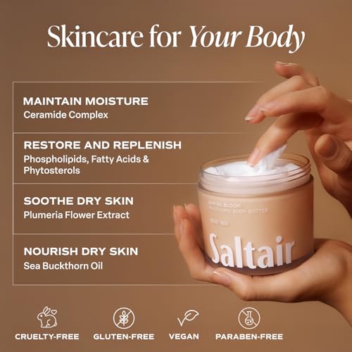 DEEP SKIN NOURISHMENT: Clinically tested 24-hour moisture that lasts with Saltair Multi-Lipid Body Butter. This nourishing body butter is formulated with a multi-lipid ceramide complex that combines ceramides, phospholipids, and phytosterols for deep hydration and dewy skin