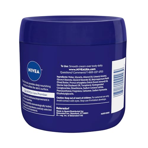 With NIVEA Essentially Enriched Body Cream, nourishing your skin with deep moisture is not as far away as you think. Enriched with our Deep Nourishing Serum and Almond Oil, this NIVEA cream provides deep nourishing moisture to dry to very dry skin. This NIVEA body cream for dry skin locks in moisture and provides noticeably smoother skin. Give your skin a little extra care and lasting moisture with this dermatologically tested body cream. To use, smooth the dry skin moisturizer over the body, and use daily for best results. This body moisturizer can also be used as a hand cream or foot cream. Check out the entire NIVEA line of products for your skincare regimen. NIVEA is proud to be one of the leading companies in the field of skin care products, with more than 130 years of experience.
