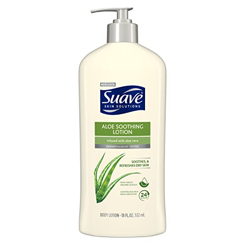 Suave Soothing with Aloe Body Lotion is a body lotion with aloe vera that provides 24 hour moisturization