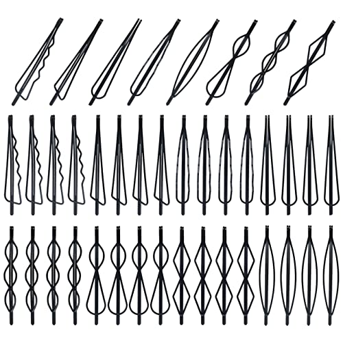 Cinaci 40 Pack 8 Styles Simple Plain Non Slip Black Metal Hair Clips Barrettes Bobby Pins Hair Accessories for Women Girls (Black-40 Pack)