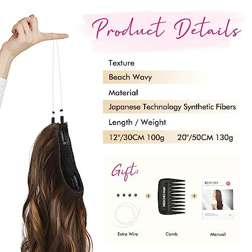 ✨ [Glorious Length & Volume in 1-minute] REECHO invisible wire hair extensions use a transparent wire to add length and thickness without tape, glue, tape for damage-free easy on and off application in less than 1 minute