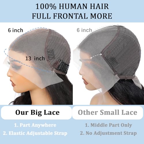 13×6 HD Lace Front Wigs Human Hair Cap Size: This body wave wig cap average size is 21.5-22.5 inches, 13×6 ear to ear HD transparent lace frontal wig, comes with 4 combs and a fully elastic adjustable strap. You can adjust the different sizes to make the human hair lace wig cap fit your head more perfectly. Easy to install. Breathable and durable lace material makes it more comfortable to wear.