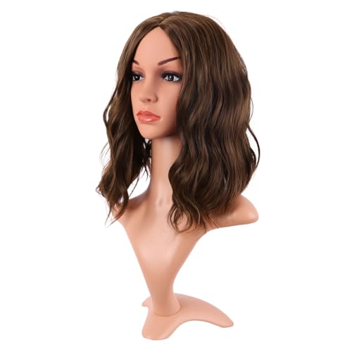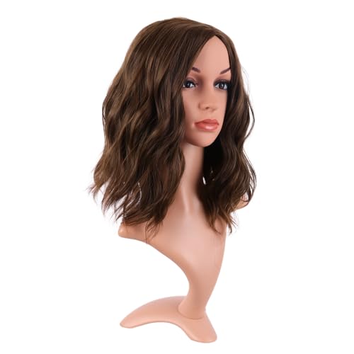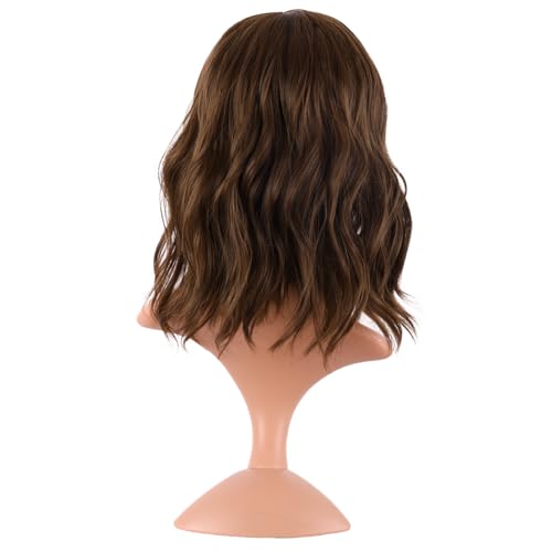 MapofBeauty 14 Inch/35 cm Bob Wavy Short Curly Body Wave Cosplay Anime Synthetic Hair Party Wig (Brown)