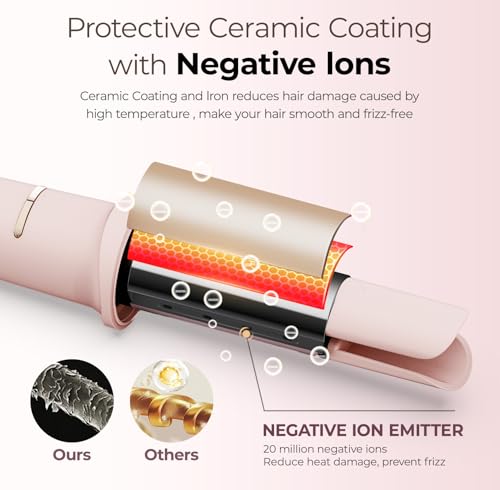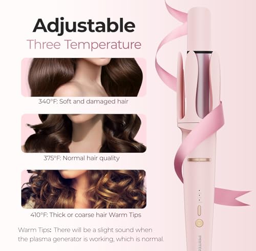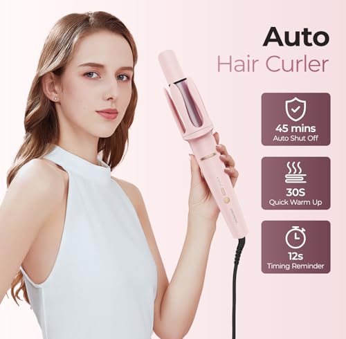 Automatic Curling Iron 1 1/4 Inch, Rotating Ionic Hair Curler Wand with 3 Temperatures, Anti-Scald, Auto Shut-Off Spin Iron for Hair Styling, Pink