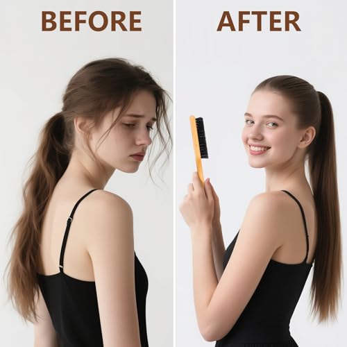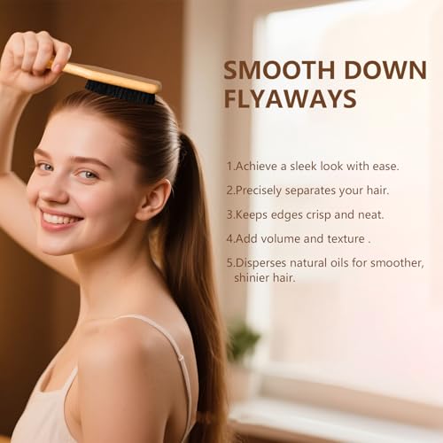 Boar Bristle Slick Back Hair Brush for Smooth Flyaways, Frizz, Sleek Ponytail, Buns and Edge Baby Hair, Teasing | Gel Comb Styling Accessories for Girls, Kids and Women