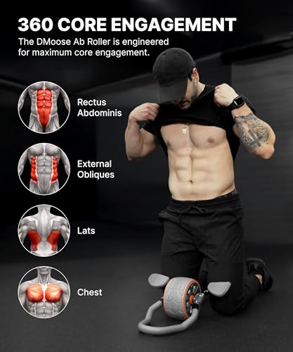 360° CORE ENGAGEMENT: Unlock the full potential of your core with the DMoose Ab Wheel Roller. Its 360° design targets your abs and obliques for maximum strength, definition and muscle engagement in every move, giving you faster, more noticeable results.