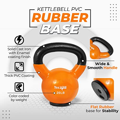 Yes4All Kettlebells Rubber Base, Kettlebell Set for Women, Strength Training Kettlebells Weights (10-65 lbs)