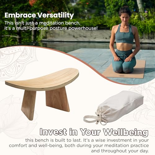 Ergonomic Wooden Meditation Bench – Kneeling Chair for Yoga, Prayer, and Seiza Practice, Portable Comfortable Meditation Stool for Deeper Meditation Mindfulness Posture Support