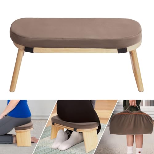 Meditation Prayer Bench, Portable Foldable & 5° Ergonomic Tilt Kneeling Meditation Yoga Stool with Cushion & Carry Bag for Home/Studio/Gym, Bamboo & Velvet Kneeling Stools (Coffee)