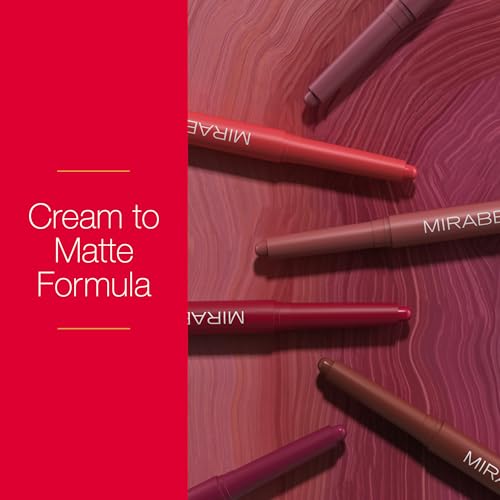 Mirabella – Velvet Matte Lip Crayon, Retractable Highly-Pigmented 2-in-1 Makeup, Long-Lasting Hydrating Lipstick Crayon + Lip Liner, Moisturizing Cream-to-Matte Lipcare Formula, Forever