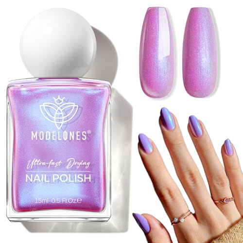 modelones Chrome Purple Nail Polish, 15 ml Quick Dry Nail Polish Mermaid Iridescent Shimmer Pearl Purple Nail Lacquer Long Last Shine Nail Art DIY Home Manicure Gift for Women Girls 0.5 Fl Oz