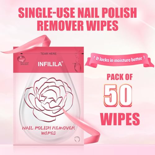 NXJ INFILILA Nail Polish Remover Pads Big Size 50 PCS Fingernail Polish Remover, Quick Nail Polish Remover Wipes, Portable Travel Kit to Clear Nail Polish for Home Professional Salon Supplies