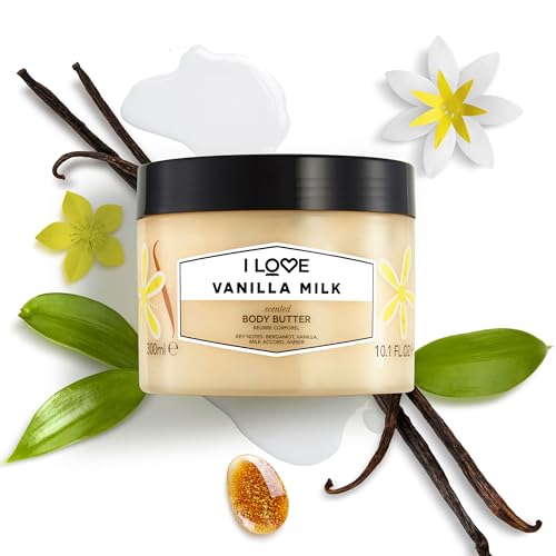 I LOVE Vanilla Milk Scented Body Butter – Hydrating Body Butter for Dry Skin – Vitamin E and Aloe Vera – Shea Butter and Coconut Oil – 10.1 oz