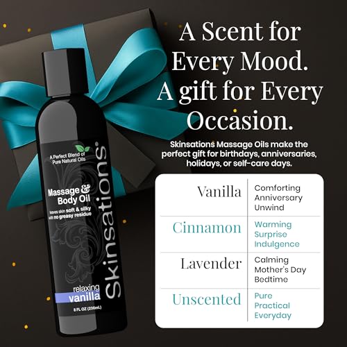 Skinsations – Vanilla Massage Oil for Massage Therapy – 8oz | Body Oil for Relaxation, Sore Muscles & Aromatherapy | Sweet Almond, Coconut, Jojoba & Grapeseed Blend