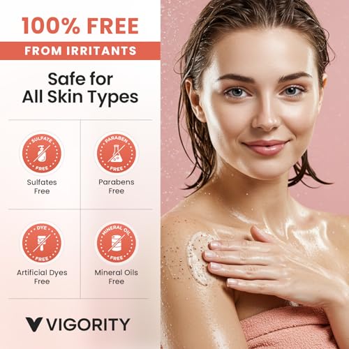Dermatologist Tested: Our exfoliating body scrub is vegan & cruelty-free, gluten-free, suitable for all skin types. It is a powerful keratosis pilaris treatment, Strawberry Legs Treatment, ingrown hair treatment to visibly clear pores and helps reduce skin bumps.