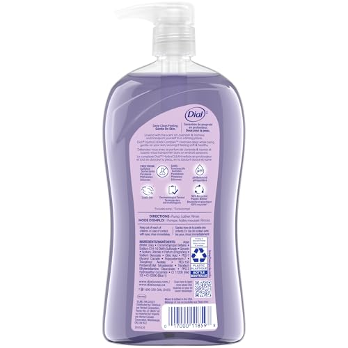 New from Dial! Calm & Soothe Lavender & Jasmine body wash. Unwind with the scent of Lavender & Jasmine and transport yourself to a calming place. Dial® HYDRACLEAN Complex™ feels deeply cleansing while being gentle on your skin, leaving it feeling soft & healthy. Dermatologist tested & approved under the Leaping Bunny cruelty free program. This package contains 32 fluid ounces of Dial body wash.