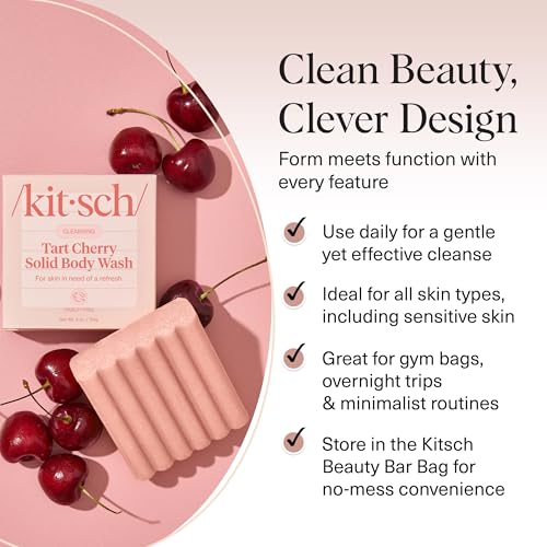 Kitsch Cleansing Tart Cherry Soap Bar with Refreshing Scent – Eco-Friendly Body Wash Women Love – Cherry Solid Bar Soap for Daily Use – Silicone, Sulfate and Paraben Free, Made in USA – 4oz