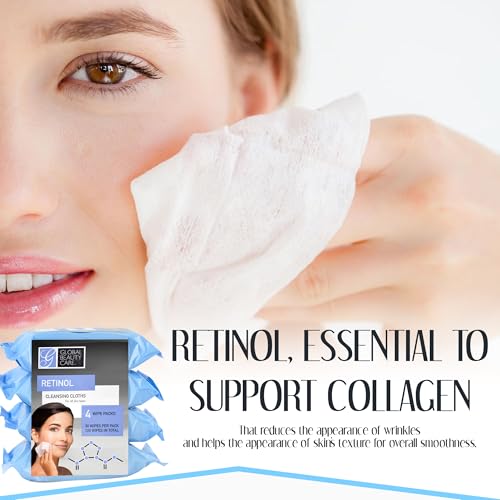 Global Beauty Care Retinol Cleansing Facial Towelettes, Makeup Remover Wipes, Nourishing Face & Eye Hypoallergenic, Paraben-Free, Non-Comedogenic, Hydrates & Smooths Skin 30 Wipes, 120 Count 4 Pack