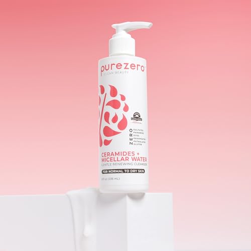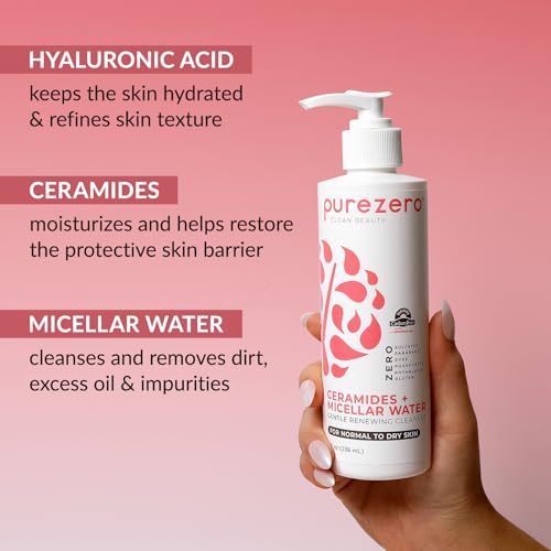 Purezero Hydrating Gentle Face Cleanser – Hyaluronic Acid Gentle Moisturizing Cleanser + Ceramides, Micellar Water, Fragrance-Free, Zero Sulfates, Parabens, Vegan & Cruelty-Free, 8 oz