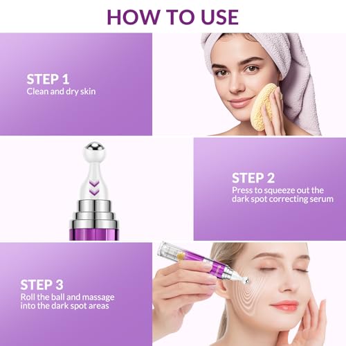 Dark Spot Remover for Face and Body, Age Spot Sun Spot Freckles Remedy Corrector Serum,Melasma Treatment for Face, Advanced Fade Cream for Uneven Skin Tone with 360° Roller Massage Ball, 0.5 FL oz
