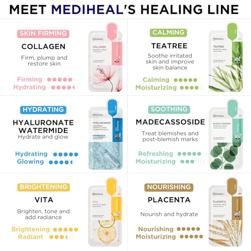 Mediheal Sheet Mask Essential Heroes 20 Variety Pack Korean Skincare Routine, Hydrating Facial Sheet Mask Combo, Daily K-Beauty Skin Therapy