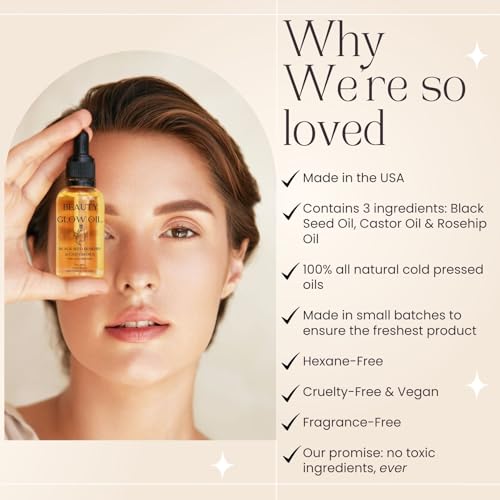 ⭐ We only use 3 ingredients: 100% all natural cold pressed Black seed oil, Castor Oil & Rosehip Oil. We are cruelty-free, fragrance-free & hexane-free. We use the highest quality oils which ensures your skin is getting the most nutritious fatty acids and vitamins. All of these nutrients help reduce the appearance of wrinkles, aging and dryness.