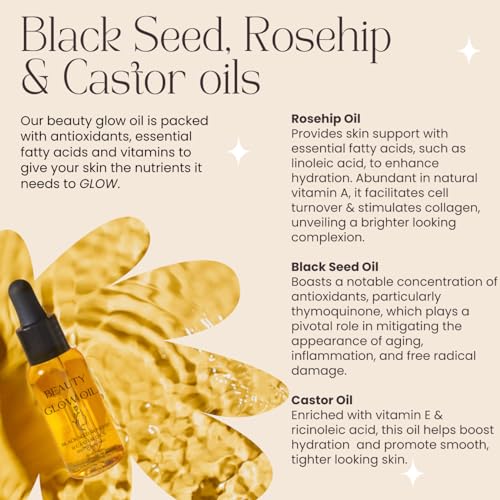 ⭐ Beauty Glow is made with love in the USA. Our proprietary blend of oils is made in small batches to ensure you get the freshest product. Our facial oil is packed with antioxidants and nutrients to hydrate & nourish the skin. The serum works with all skin types including dry skin, oily skin, combination skin, youthful skin & mature skin.